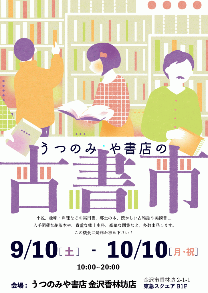 恒例「うつのみや書店の古書市」を開催いたします。
